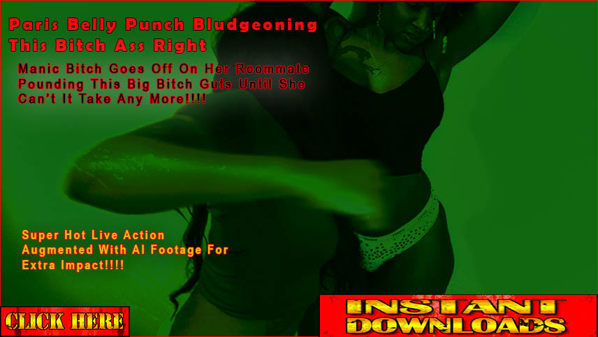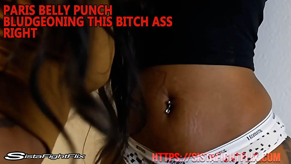 Paris has had enough of this big booty bitch and really lays into to soft guts for some hard and poounding belly punch dominating that this bitch won't soon forget!!!!