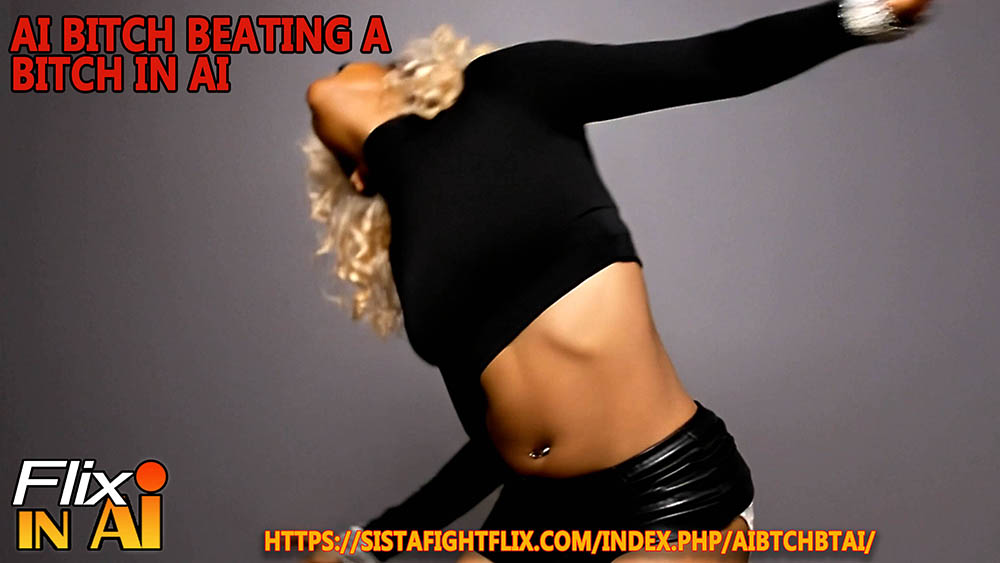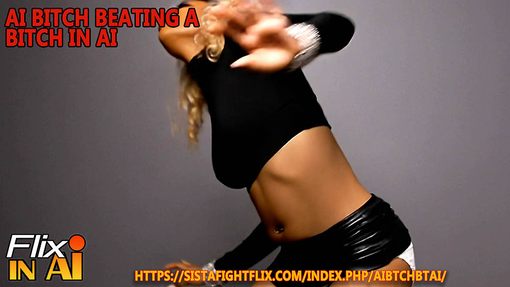Our hot AI model in a violent underground fight club match up agaisnt a superior ebony bitch and really gets laid into and suffers a full throttle beatdown with all that ass jiggling and that tiny skirt rolling up as each blow lands to her sensitive and exposed areas making her tap out!